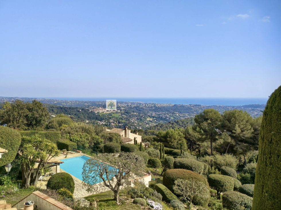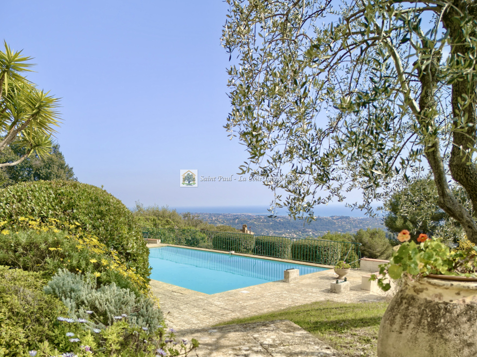 Exclusivité - Au sein du très recherché domaine sécurisé des Hauts de Saint-Paul, à seulement 20 minutes de l’aéroport international de Nice et à 5 minutes du village historique de Saint-Paul-de-Vence, cette villa de caractère bénéficie d’un emplacement privilégié en position dominante. La propriété offre une vue panoramique exceptionnelle sur la vallée, le village emblématique de Saint-Paul-de-Vence et la mer, visible à perte de vue. Son exposition plein sud garantit un ensoleillement optimal tout au long de la journée. D’une surface d’environ 240 m², la villa propose une distribution harmonieuse et conviviale, idéale pour accueillir famille et invités. Le rez-de-chaussée s’ouvre sur une entrée desservant un superbe séjour cathédrale avec cheminée, baigné de lumière, prolongé par une vaste terrasse solarium offrant une vue mer spectaculaire. Une cuisine indépendante complète cet espace de vie. Ce niveau accueille également trois belles chambres. En rez-de-jardin, un espace indépendant propose une pièce de vie aménagée en salle de jeux, ainsi que trois chambres supplémentaires en enfilade, offrant de nombreuses possibilités d’aménagement. Implantée sur un terrain paysager d’environ 3800 m², la propriété est agrémentée de belles restanques, d’essences méditerranéennes et d’oliviers, dans un environnement calme et préservé. À l’extérieur, une piscine de 12 x 6 mètres avec pool house couvert permet de profiter pleinement des extérieurs et de recevoir dans un cadre privilégié. Un terrain de pétanque complète cet art de vivre typiquement provençal. Cette propriété de charme, au fort potentiel, nécessite des travaux de rénovation, offrant ainsi l’opportunité de révéler pleinement tout son caractère et d’en faire une résidence d’exception au sein d’une adresse prisée de la Côte d’Azur.